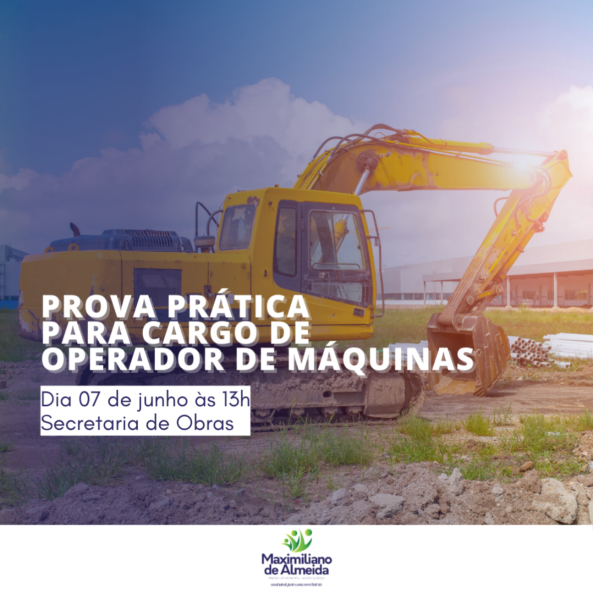 Convocamos todos os inscritos para a prova prática do cargo de operador de máquinas, que será realizada no dia 07 de junho, às 13h, na Secretaria de Obras. É de extrema importância que os candidatos estejam presentes no local designado, a fim de participar desta etapa decisiva do processo seletivo. A prova prática será fundamental para avaliar as habilidades e competências necessárias para o desempenho eficiente da função.